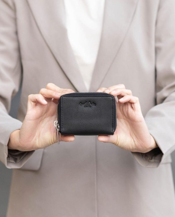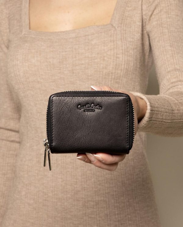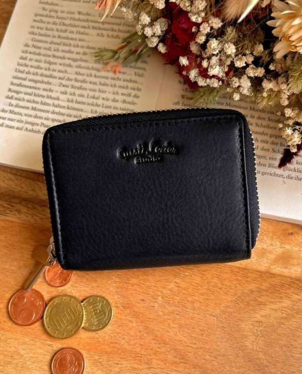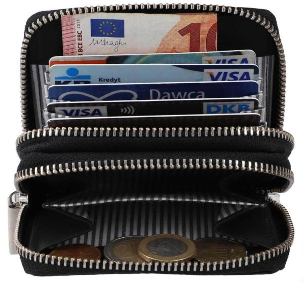 Geldbörse Portemonnaie Kartenhülle Kartenhalter Klein Damen Herren Schwarz Leder