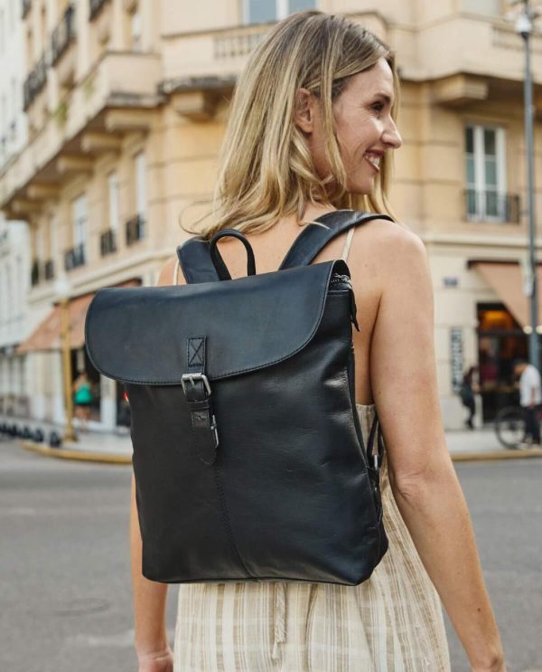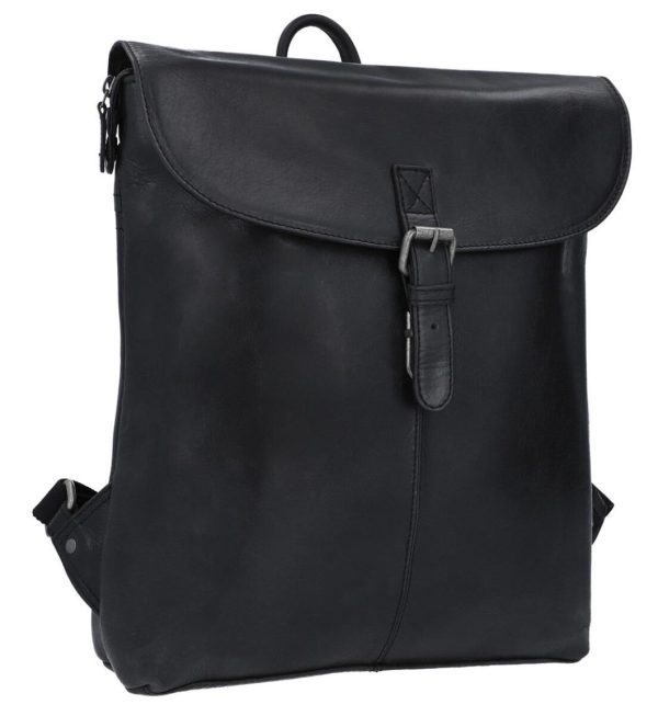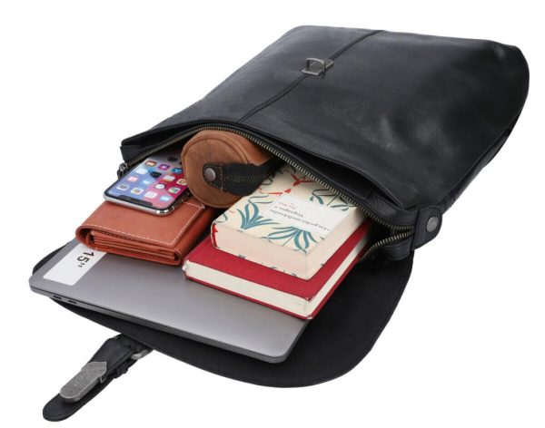 Kurierrucksack Lederrucksack mit Reißverschluss und Schnalle diebstahlsicher Schwarz Leder Damen Herren