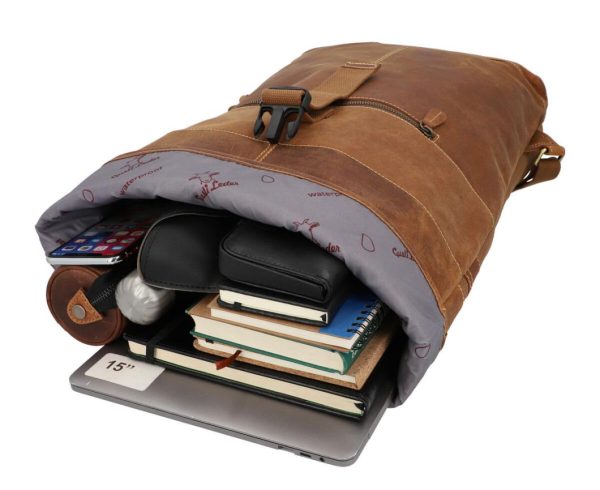 Rolltop Kurierrucksack Rucksack Lederrucksack Vintage Cityrucksack Outdoorrucksack Laptoptasche Unirucksack Wanderrucksack Braun Leder 18L