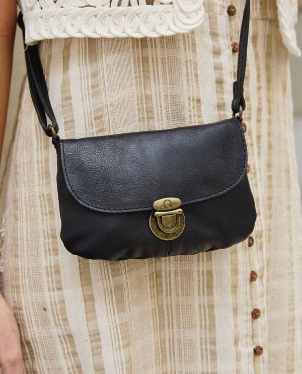 Handtasche Umhängetasche Ledertasche Damen Schwarz Leder