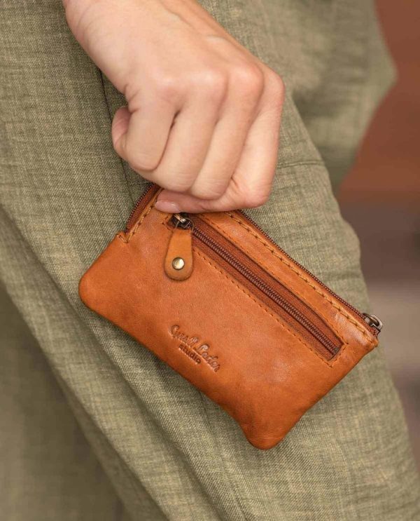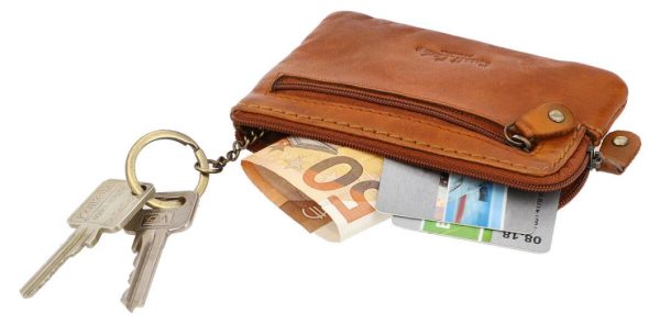 Portemonnaie Geldbörse Kartenetui Schlüsselanhänger Schlüsseletui Herren Damen Braun Leder